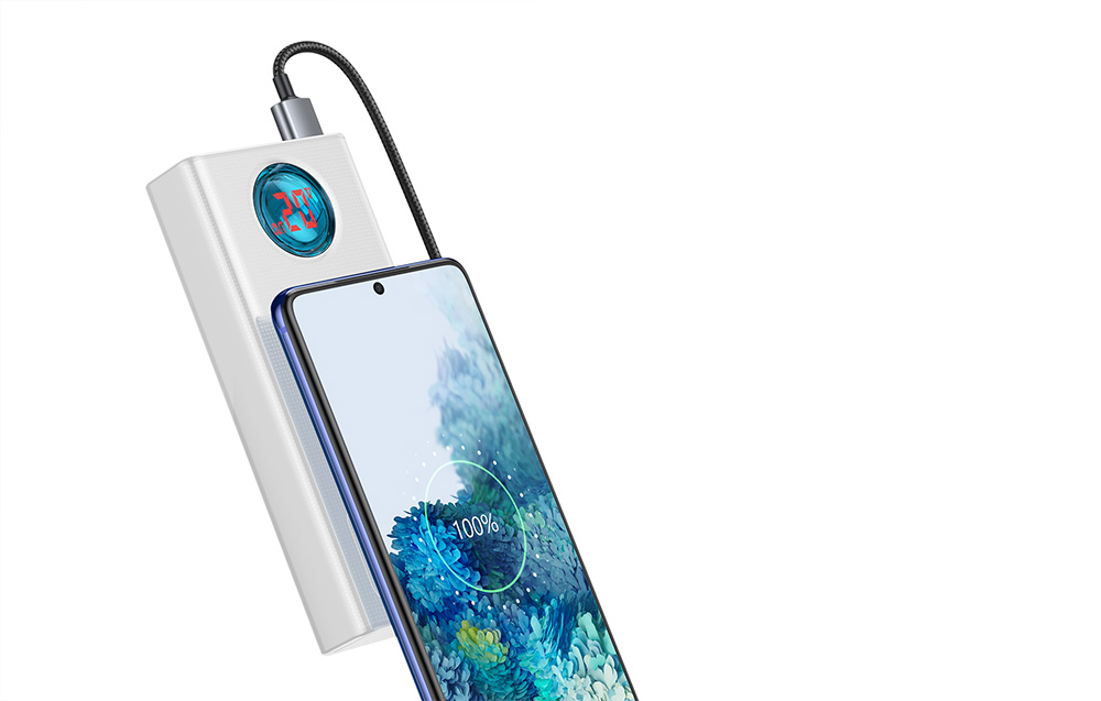 Med Baseus Amblight powerbank kan du lade opptil 5 enheter samtidig, noe som sparer tid. Dessuten fungerer den med hurtigladeprotokoller som PD3.0, QC3.0, FCP, SCP osv. Dette betyr at du umiddelbart kan fornye energien til smarttelefoner fra Apple, Huawei, Samsung, Xiaomi og mange andre. Dermed lader du Samsung S20 Ultra på ca. 60 minutter.