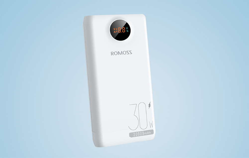 Romoss powerbank har et digitalt LED-display som gir informasjon om ladenivået. Men det er ikke alt. Innovativ teknologi gjør det mulig å bytte mellom ulike moduser og vise informasjon om spenning og ladehastighet. I tillegg vises et lite ikon på skjermen når laderen er i hurtiglademodus.