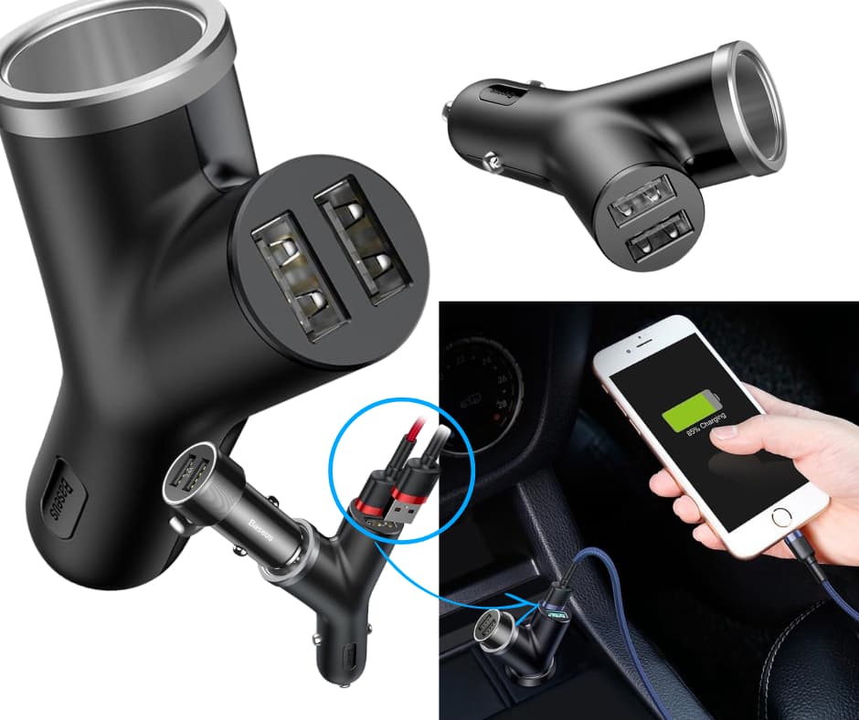 Baseus BSC-C16N billader leveres med et sigarettenneruttak sammen med en ladeport for enhetene dine. Denne doble designen vil ikke få deg til å miste funksjonaliteten til stikkontakten når du kobler enhetene dine til lading.