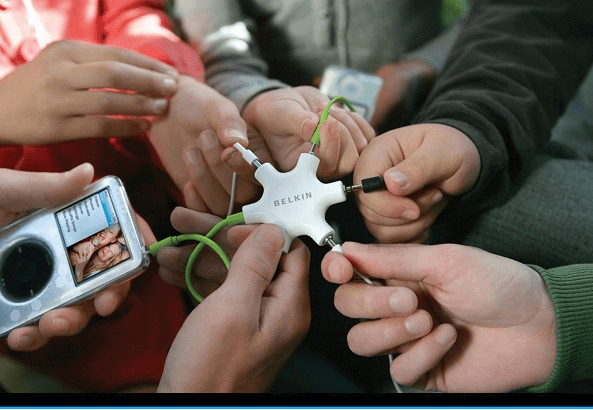 Med denne hodetelefonsplitteren kan du dele favorittmusikken din med dine venner! Lettere enn å låne den ene øretelefonen, og bedre enn å låne hele hodesettet – når du vet at kameraten din også kunne tenke seg å høre på musikk på den lange togreisen.