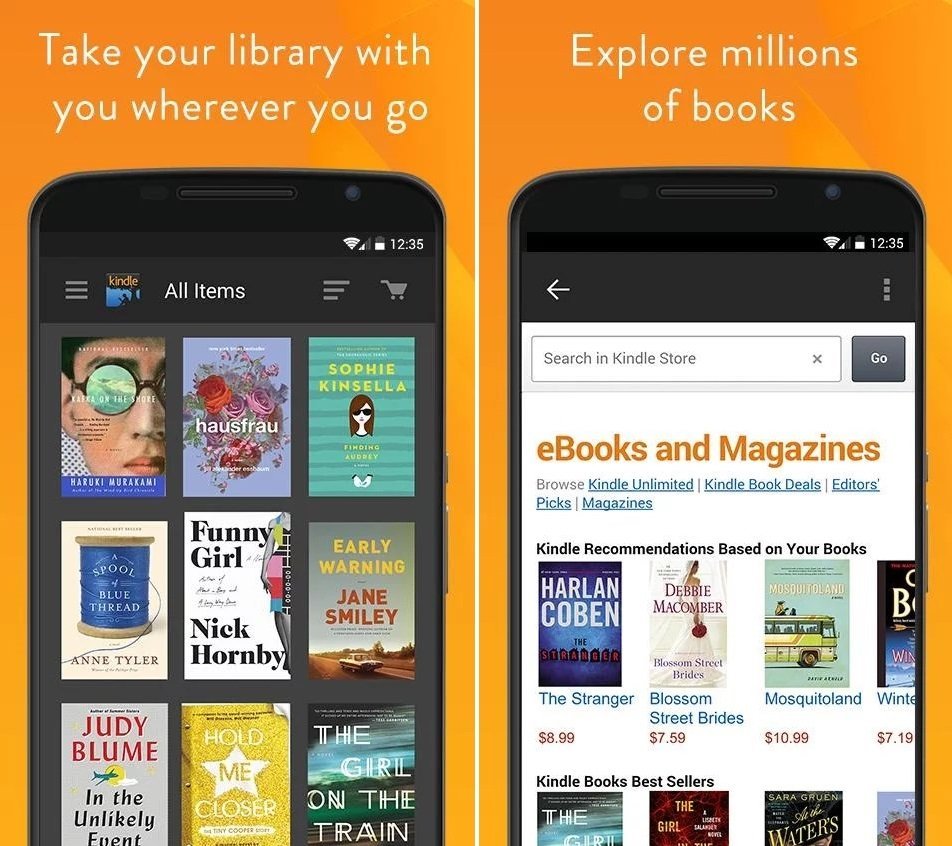 Istedenfor å laste kofferten full av tunge bøker, kan du ved hjelp av Kindle-appen ta dem med i elektronisk format. I tillegg til nye bøker og eldre favoritter kan du også finne aviser, magasiner og tekstbøker gjennom Kindle. Appen tilbyr også andre nyttige muligheter som natt-modus, direkteoversettelse, etc.
