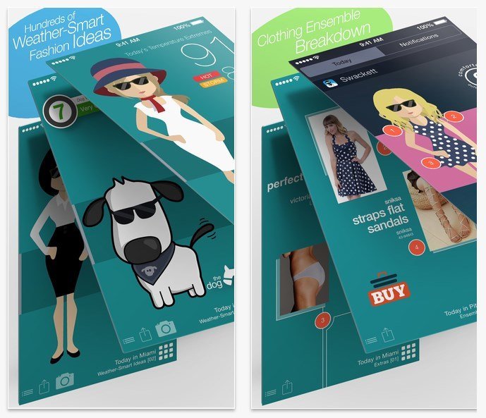 Swackett forteller deg hva du skal pakke med deg, om du kommer til å trenge paraply eller solbriller. Denne applikasjonen konverterer værmeldingen til avatarer som har kledt seg korrekt for anledningen.Er det kaldt ute har ikonet på seg genser og jakke. Når det er varmt tar avataren på seg shorts og t-skjorte.