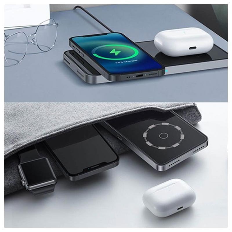 Denne doble laderen fungerer effektivt med alle Qi-aktiverte enheter, slik at du kan utvide bruken til mange forskjellige dingser. Det kompakte og slanke designet gjør den også til en flott bærbar lader som du alltid kan ha med deg på reisene dine.