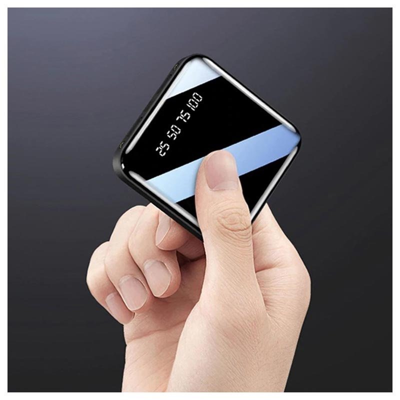 Det stilige Mini rask powerbank med speil-finish er en lite og kompakt powerbank for deg når du er på farten. Denne powerbanken i lommestørrelse har en kapasitet på 10.000 mAh for å gi strøm til alle enhetene dine uten å legge til masse. Den veier bare 250 gram!