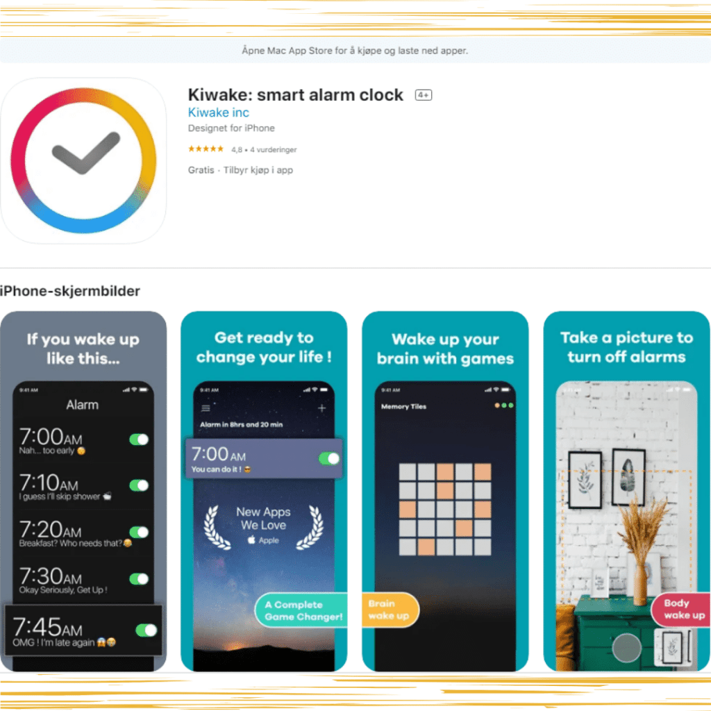 Du kan ikke ha en produktiv dag med en sen start på den. Tidsstyring starter rett med å våkne i tide og ikke trykke på slumre-knappen. Kiwake-appen er en smart vekkerklokke som sørger for at du er ute av sengen og våken for å oppfylle dine daglige mål.