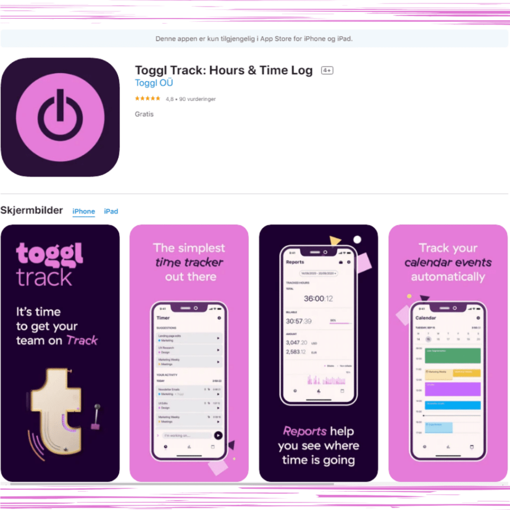 Logg arbeidstiden din med Toggl Track: Tidssporing og arbeidstidslogg