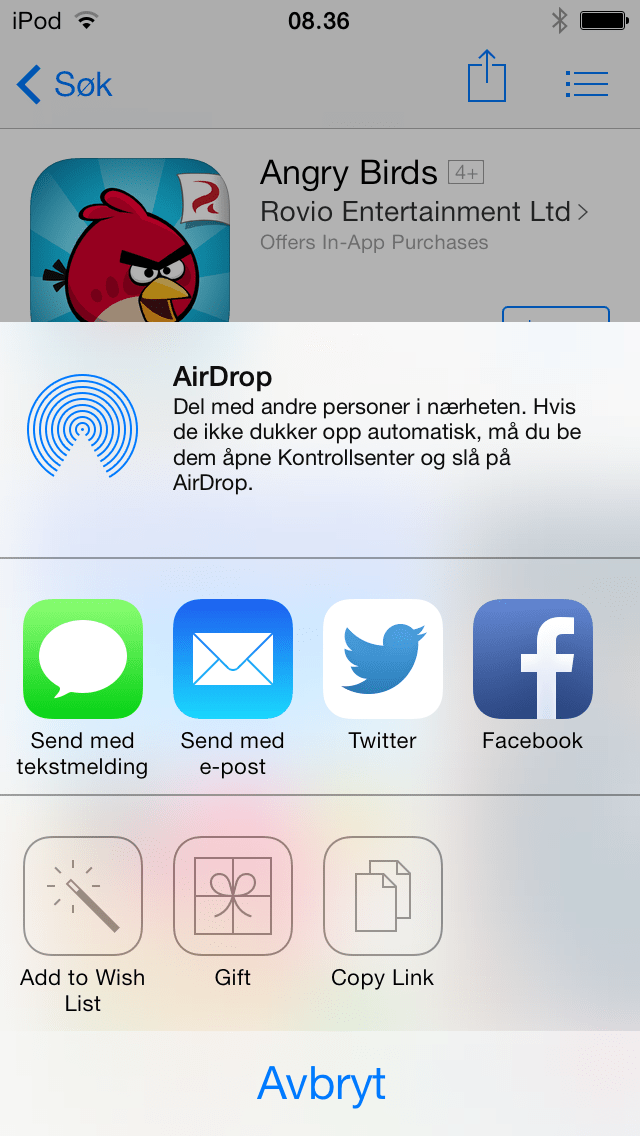 Før du gjør noe, sørg for at du har en betalingsmetode satt opp på din iTunes-konto. Deretter gå til App Store og søk etter app som du ønsker å sende. Etter at du har funnet den, trykker du på den og deretter på Del-knappen i øvre høyre hjørne av vinduet. En meny med alternativer for deling vil dukke opp. Velg Gave. Du vil bli bedt om å bekrefte betalingen ved å skrive inn passordet ditt.