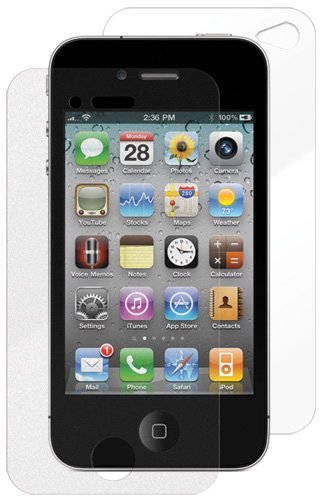 NuVue Anti-Glare Screen protector omfatter både fram og bak beskyttende film for iPhone 4. Den beskytter både fram og bak glassflater.