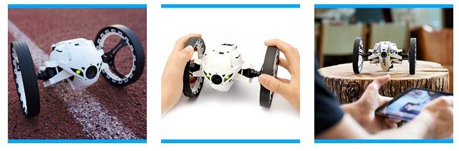 Parrot Jumping Sumo er en uvanlig robot som hopper opptil 80 cm, tar svinger, farer sikksakk (opptil 7km i time) og utfører akrobatiske triks avhengig av din kjøring. Den er i tillegg bevæpnet med sensorer og gyroen som gjør at den smarte roboten er kjempestabil og at kamera alltid er i samme vinkel – uansett hvor mye du hopper. Du kan styre Jumping Sumo fra opptil 50-meters avstand, med en smarttelefon eller et nettbrett (både iOS, Android og Windows Phone er støttet), mens videoen blir strømmet direkte på skjermen til din enhet. I butikken vår kan du lese mer om, eller skaffe deg Jumping Sumo i svart, eller den hvite versjonen av Jumping Sumo.