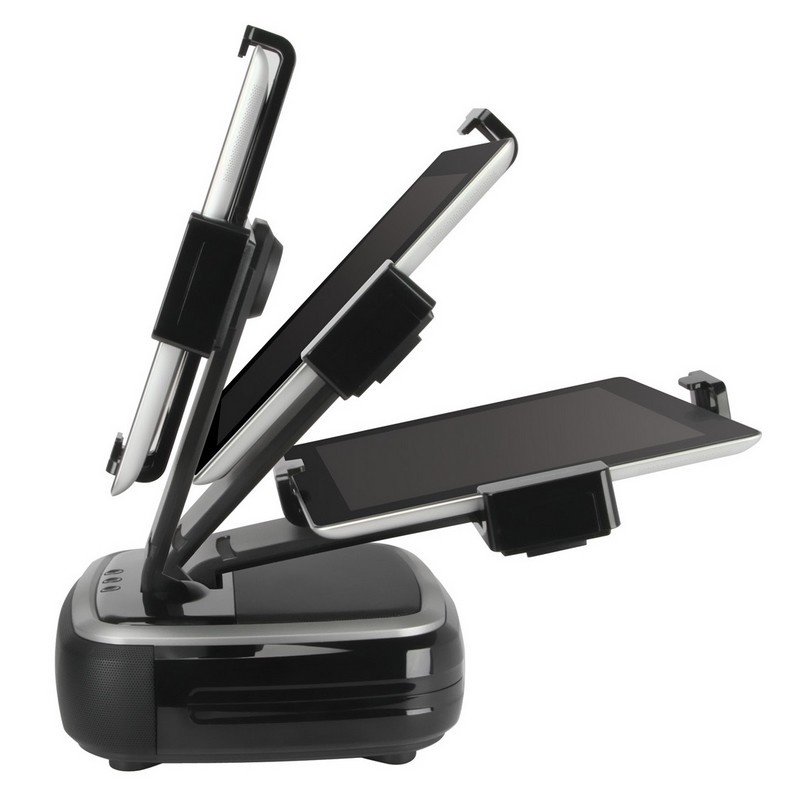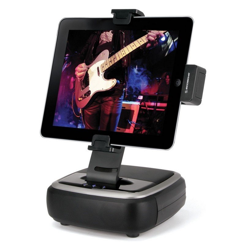Scosches BassDock er en holder og høyttalerdock spesialdesignet for iPad og kompatibel med alle tre generasjoner av Apples tablet. Holderen kan dreies for justerbar stående og liggende visning og samtidig opplader din Apple enhet. Scosches iPad dock har to 1,6-tommers høyttalere, samt en 3-tommers subwoofer.