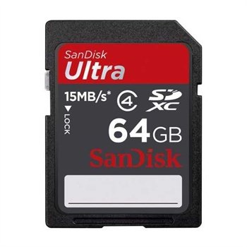 SanDisk Ultra SDXC minnekort er perfekt for de nyeste høy-megapikslers kameraer og HD videokameraer som støtter det nye SDXC format. SanDisk Ultra SDXC flash minnekort leverer bra ytelse for å ta bilder, og rask nedlasting mellom din PC og kortet, ved å redusere ventetiden. Disse kortene har en klasse 4 karakter for å sikre jevnt HD-videoopptak og avspilling og rask overføringshastighet på opptil 15MB/s/1.