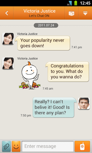 Med chatON kan du chatte med vennene dine i sanntid. Hva betyr det? Du kan uttrykke dine tanker mens du skriver din melding ved hjelp av emotikoner som vil gi en spesiell tone til meldingen. Hva gjør Chaton så spesielt er det faktumet at du kan feste videoer, lydfiler og selv animasjoner til din melding. Den innebygde tegningsfunksjonen vil registrere din skriving eller tegning og vil konvertere dine kunstverk eller din skriftlig melding til en spillbar video som du kan se i sanntid. Utrolig, ikke sant?