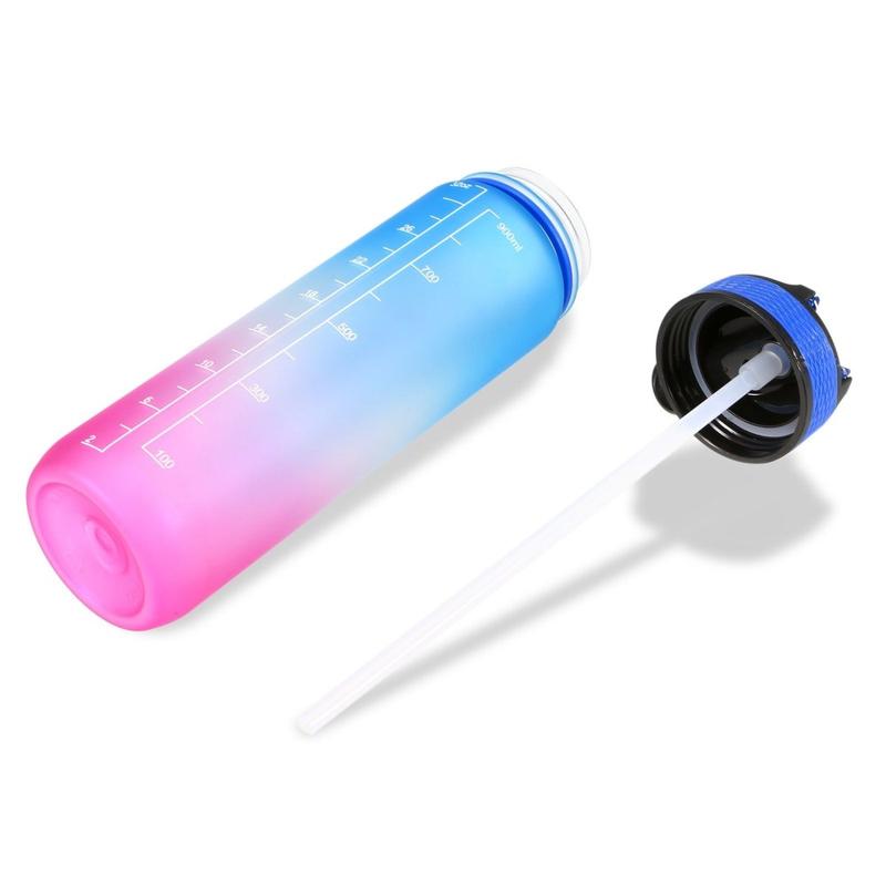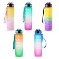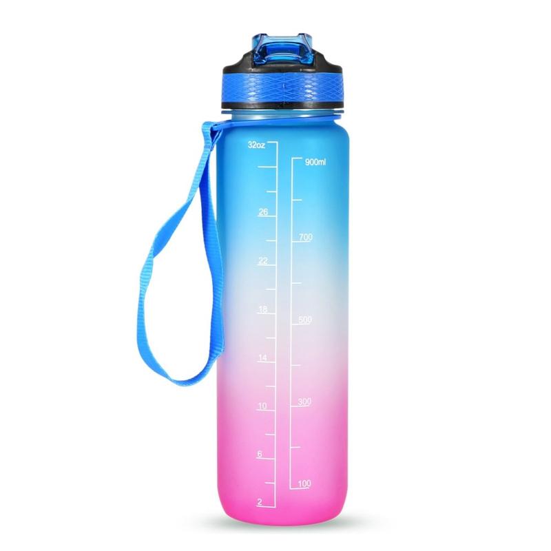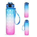 1 liter sportsvannflaske med tidsmarkør Vannkanne Lekkasjesikker vannkoker for kontor, skole og camping (BPA-fri) - blå/lilla