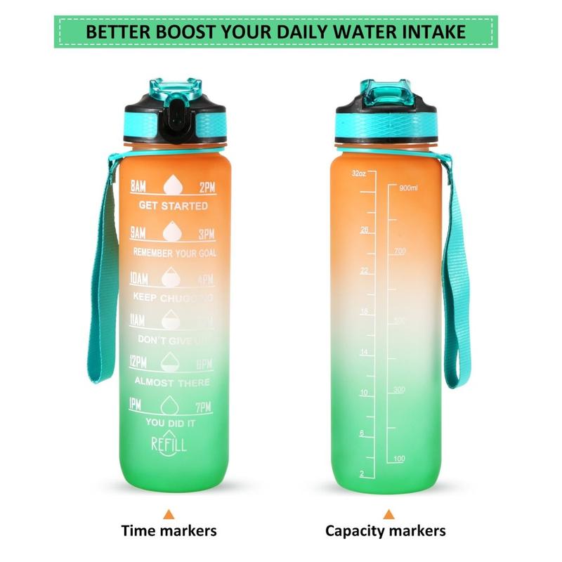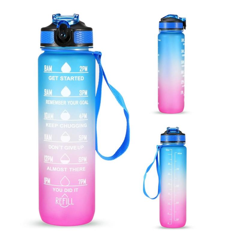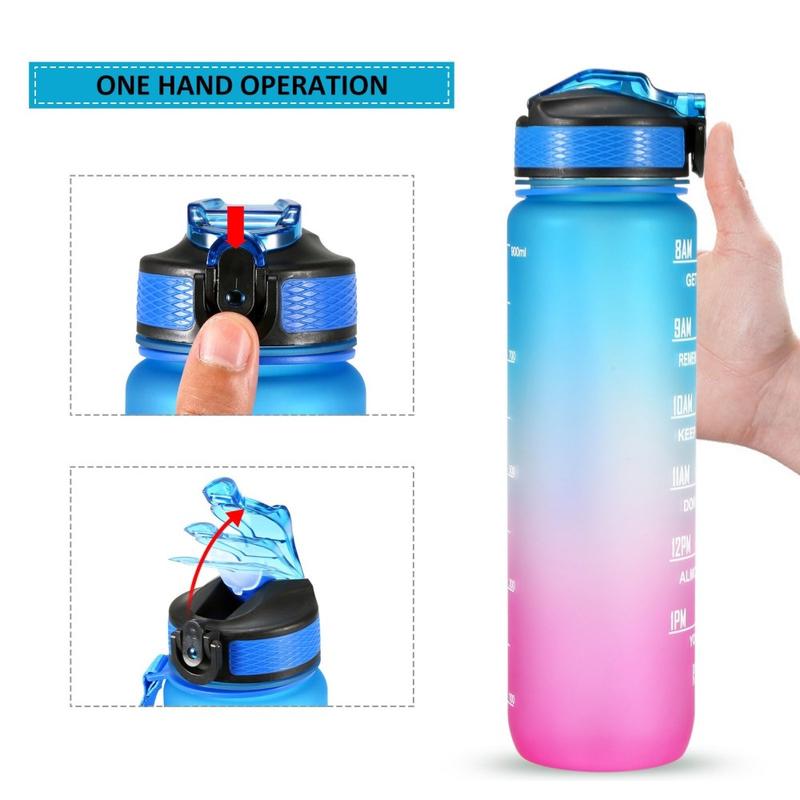 Denne vannflasken på 1 liter er designet med tidsmarkør og inspirerende sitater som hjelper deg å holde deg motivert til å drikke nok vann i løpet av dagen. Perfekt til trening, løping, fotturer, sykling, camping, yoga eller andre sportsaktiviteter hjemme, på treningsstudioet, kontoret eller utendørs.