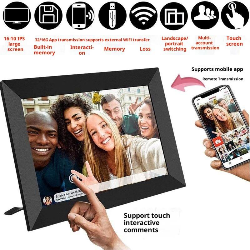 Denne 10.1" WiFi-digitale fotorammen leverer skarp skjermkvalitet, smart trådløs deling, sjenerøs lagring og flerbrukertilkobling, noe som gjør den til den perfekte moderne løsningen for familier, kontorer eller som en gjennomtenkt gave.