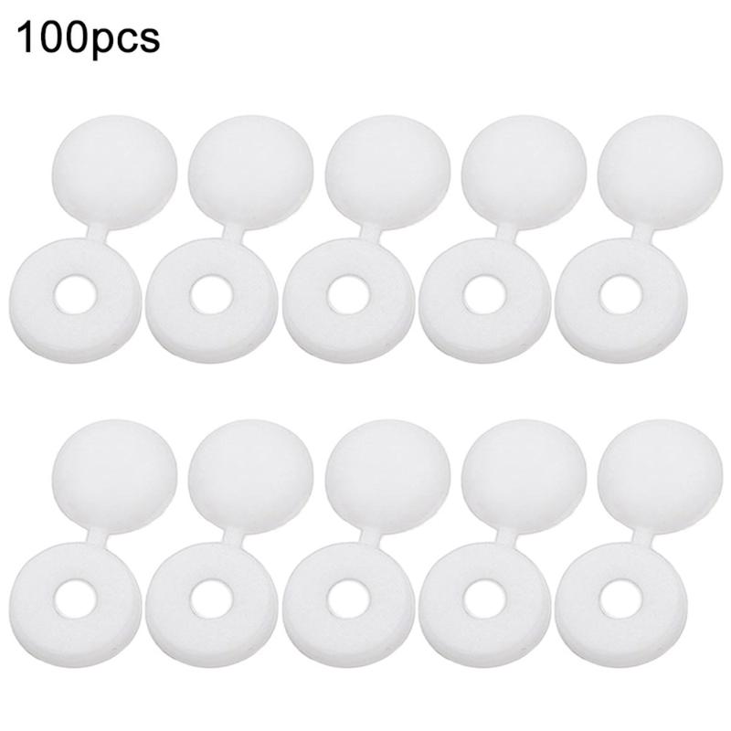 100 stk. Hengslede skruedeksler av plast - 13 mm ytre diameter, 5 mm hull, snap-on skruedeksler for selvgjengende skruer