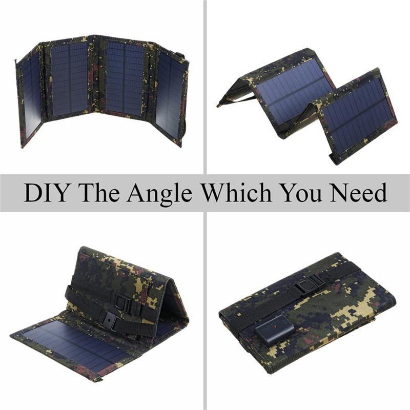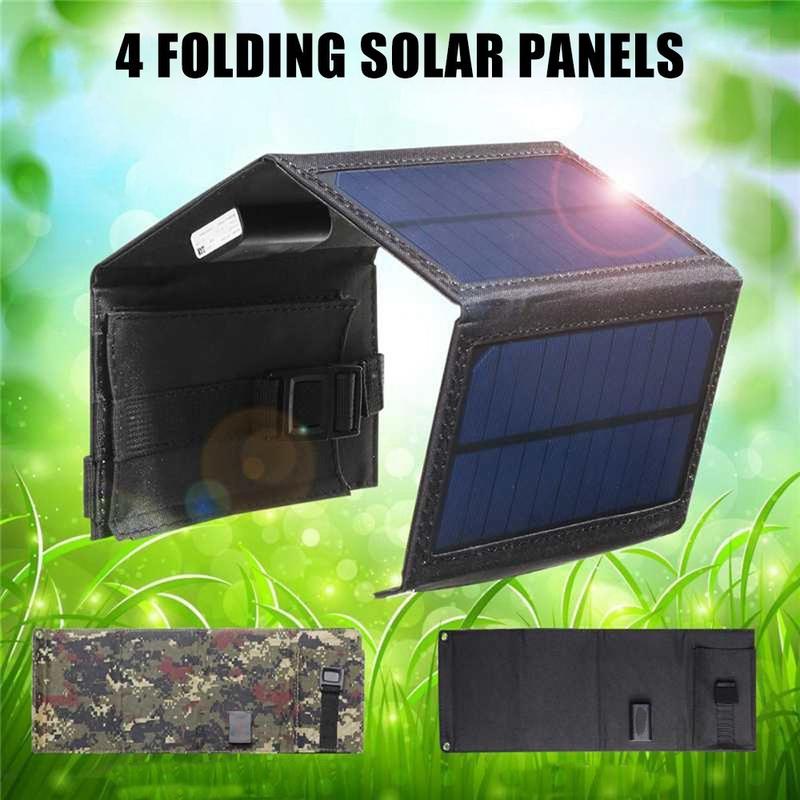 10W sammenleggbar USB-solcellelader/strømbank med 4 paneler - bærbar solcellelader for utendørs bruk til telefoner og nødstilfeller