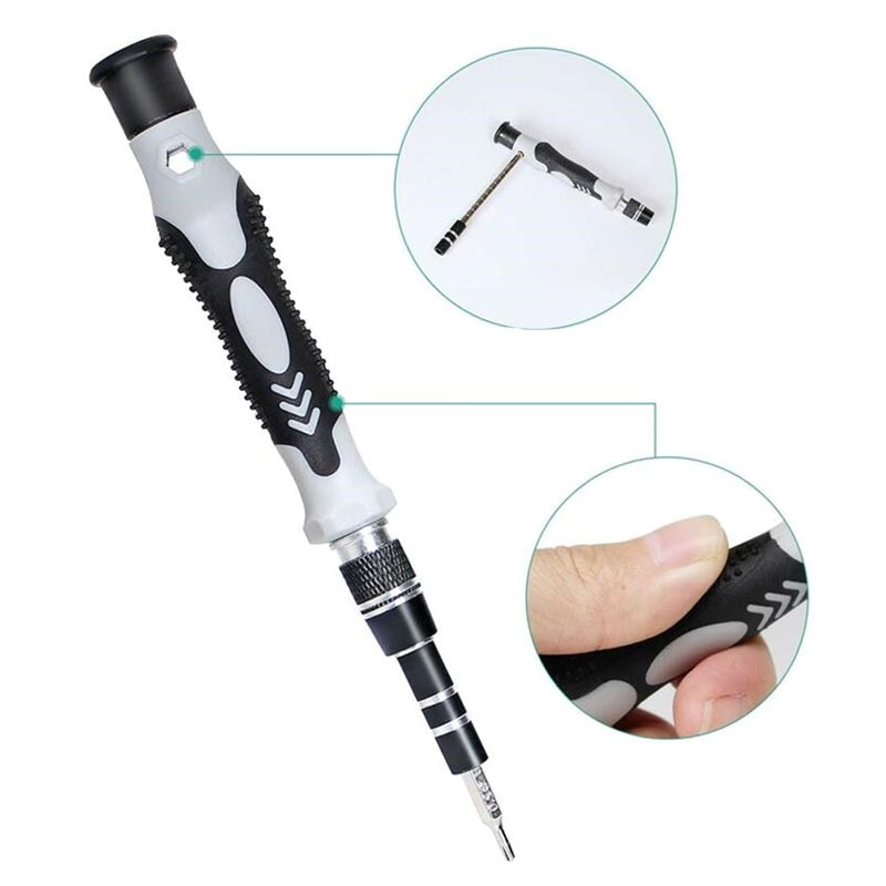 - Presisjons skrutrekkersett er designet for å håndtere de små og delikate skruene som finnes i moderne elektronikk