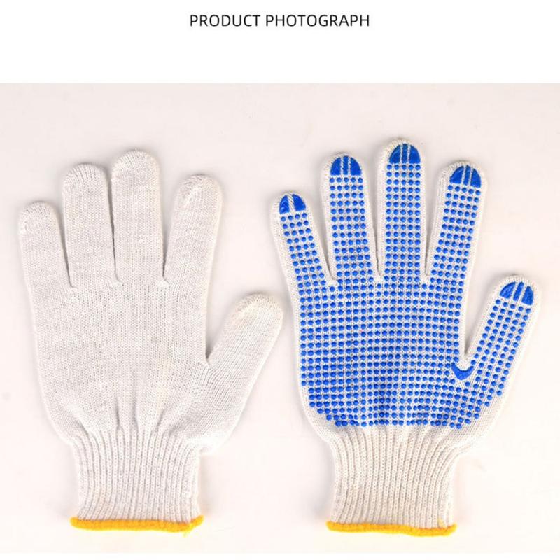 Disse hanskene gir den perfekte balansen mellom håndbeskyttelse, komfort og grep. Det tykke bomullsgarnet beskytter hendene mot skrubbsår, mens den pustende designen holder deg komfortabel under langvarig bruk. Med sklisikre partikler for presisjonshåndtering og forsterkede sømmer for holdbarhet, er de en praktisk investering for alle som jobber med hendene.