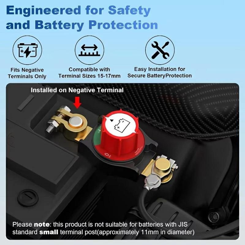 Denne batterihovedbryteren er en smart oppgradering for alle som ønsker en enkel, effektiv og pålitelig måte å administrere batteristrøm på. Den bidrar til å beskytte batteriet når kjøretøyet står parkert i lengre perioder, støtter sikrere service og kan også fungere som et raskt nødstopp. Takket være sin høye strømkapasitet og enkle betjening er den egnet for både hverdagsbiler og mer krevende bruksområder.