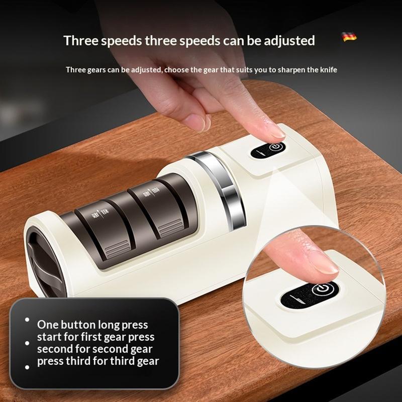 12W trådløs elektrisk knivslipemaskin med 3 hastighetsinnstillinger og diamantslipeskive for kokkekniver