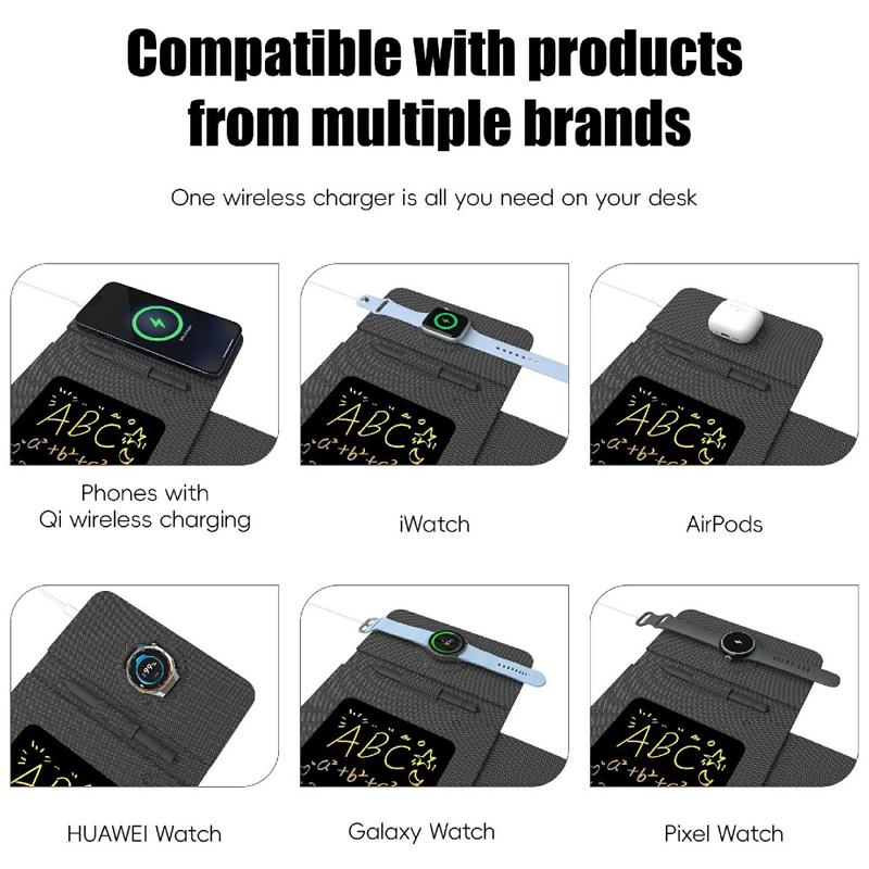 15W sammenleggbar musematte med trådløs ladestasjon og skrivebrett