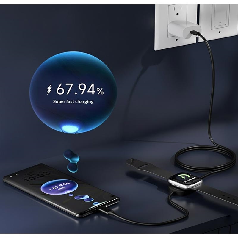 Denne 1-i-1 Type-C-hurtigladekabelen på 1.2m kombinerer kraftig 100W PD-lading med en magnetisk trådløs lader for Apple Watch, noe som gir en praktisk og rask løsning for både smarttelefon- og smartklokkebrukere. Kabelen har en ren kobberkjerne som gir stabil utgangseffekt og forbedret batteribeskyttelse, noe som sikrer effektiv og pålitelig lading hver gang. Det sterke magnetiske festet garanterer sikker plassering og perfekt justering, noe som gjør ladingen uanstrengt. Med støtte for hurtigladeprotokollene PD, QC og FCP er denne allsidige kabelen kompatibel med et bredt utvalg av enheter på tvers av flere merker. Den er kompakt, slitesterk og reisevennlig, og er det ideelle alt-i-ett-ladeverktøyet for bruk hjemme, på kontoret eller på farten.