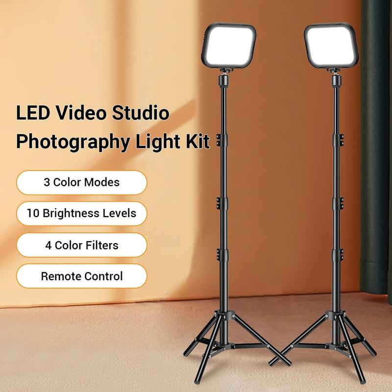 2 LED-lys på justerbart stativ og 4 fargefiltre for foto og video
