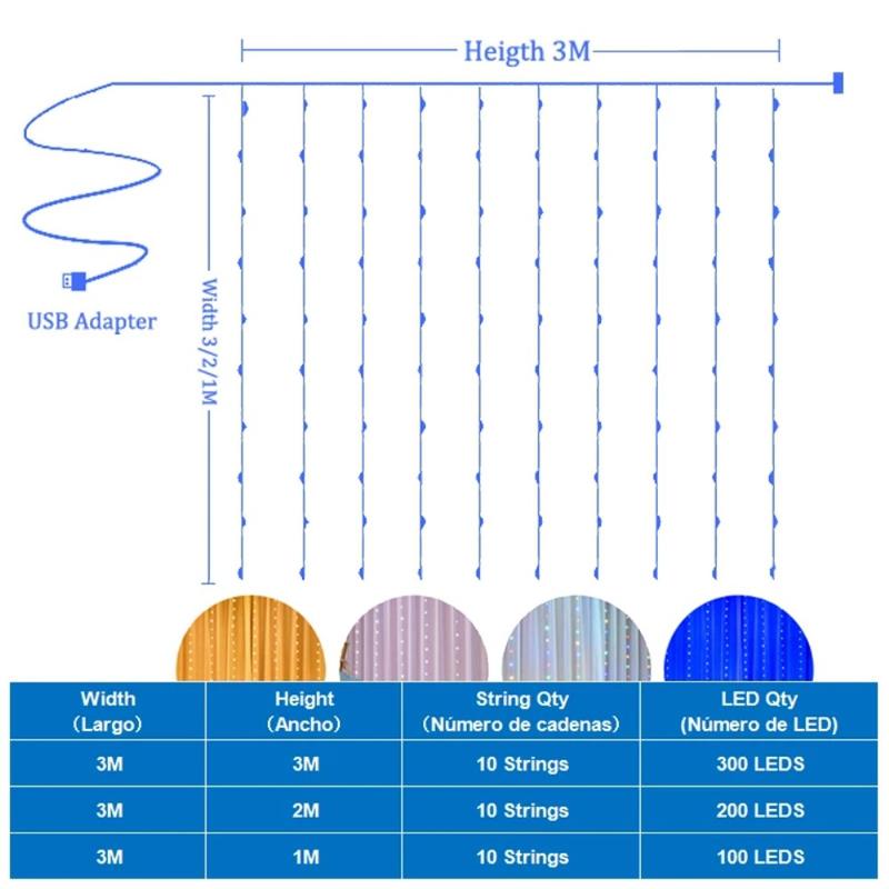 Skap en magisk atmosfære med 3m x 2m 200 LED Fairy String Lights, designet for jul, bryllup, fester, hjemmeinnredning og mye mer. Med 8 justerbare lysmoduser, en praktisk fjernkontroll og energieffektiv USB-strøm gir disse gardinlysene varme, eleganse og allsidighet til ethvert rom.