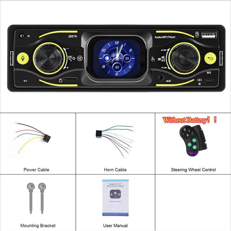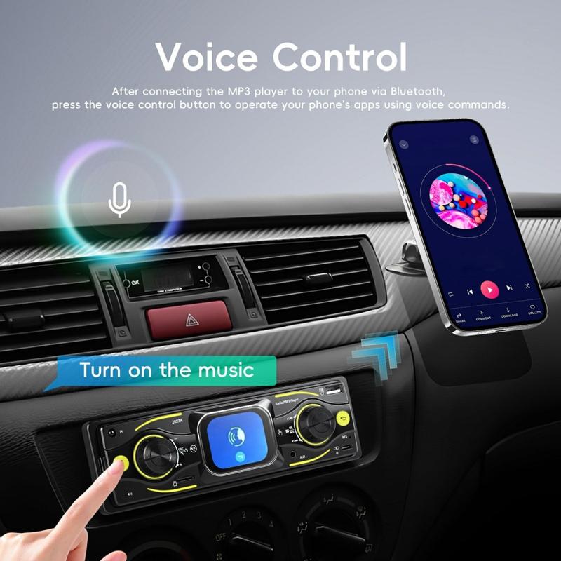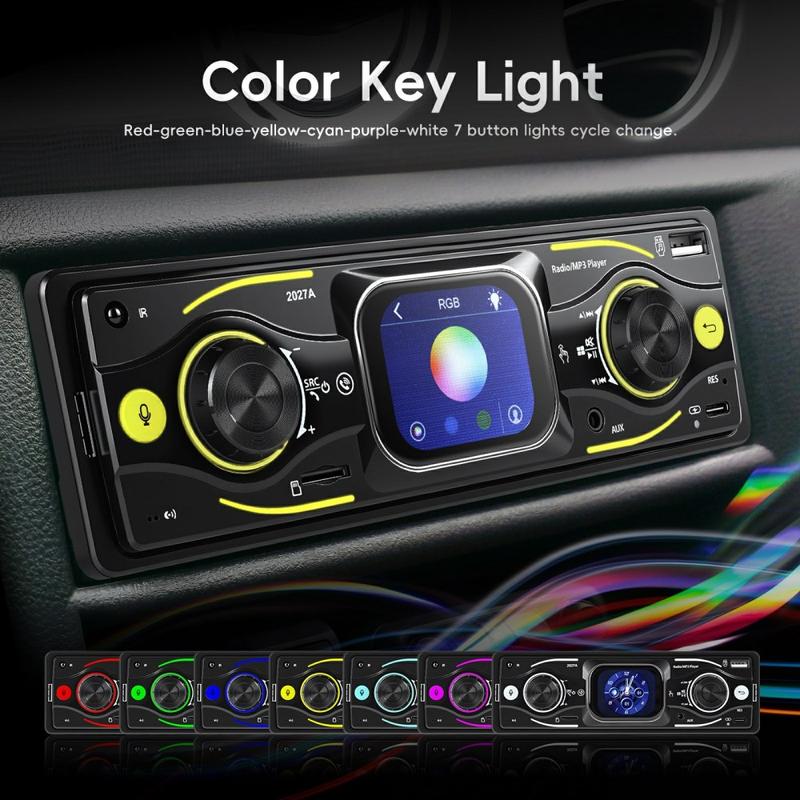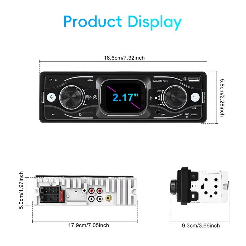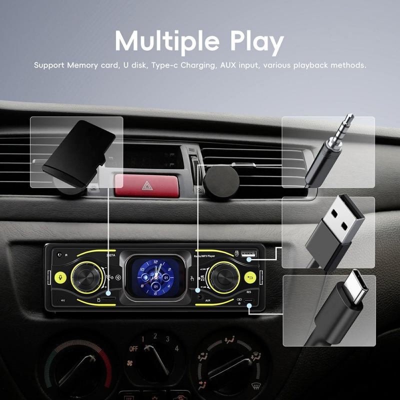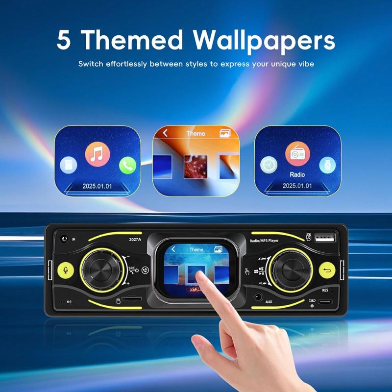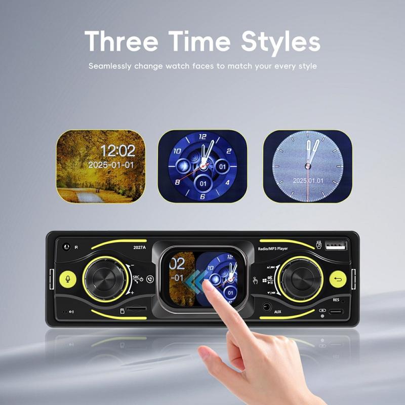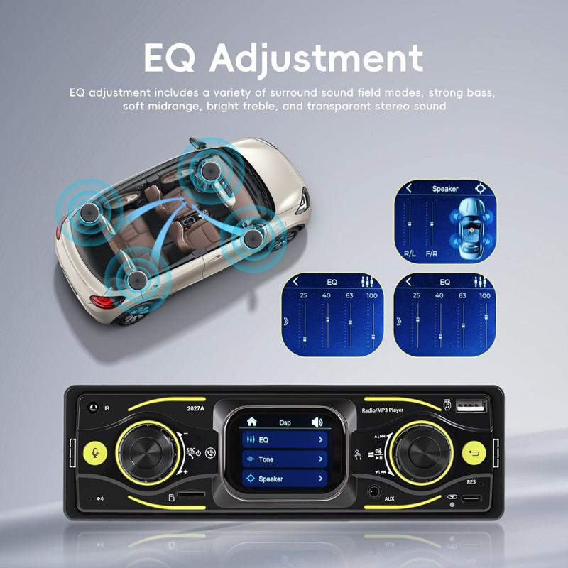 Oppgrader din daglige kjøretur med 2027A Single DIN bilstereo multimediaspiller - utviklet for enkel betjening, bedre lyd og moderne tilkoblingsmuligheter. Den 2.17" store TFT-berøringsskjermen fungerer sammen med fysiske knapper, slik at du kan justere musikk og innstillinger raskt mens du holder fokus på veien. Strøm lyd trådløst via Bluetooth-kompatibel 5.0, ta håndfrie samtaler og nyt fleksible innganger som USB-C, USB, TF-kort og AUX for et oppsett som passer til enhver tur.
