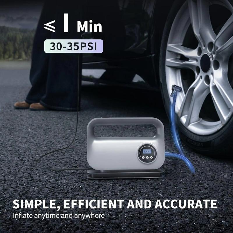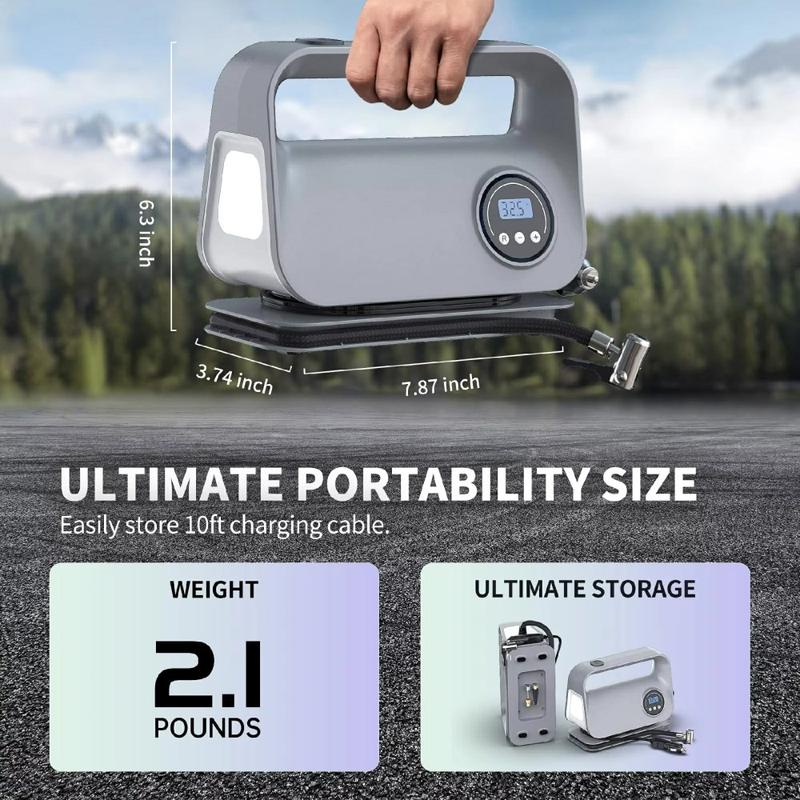 - Bærbar og lett - kompakt nok til å oppbevares i hanskerommet eller bagasjerommet, samtidig som den er kraftig nok til å håndtere flere oppblåsingsoppgaver.