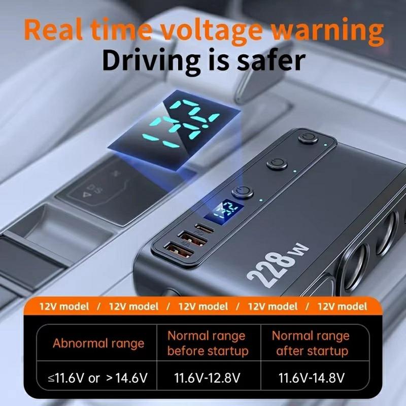Den innebygde LED-skjermen viser bilens batterispenning i sanntid, noe som hjelper deg med å overvåke elsikkerheten mens du er på veien. Den bekrefter også når enhetene dine lades med optimal hastighet.