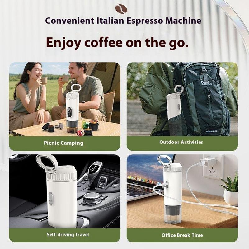 3-i-1 bærbar espressomaskin - trådløs elektrisk kapselkaffemaskin med 7500 mAh batteri for bil, hjemme og utendørs - kompatibel med Nespresso, DolceGusto-kapsler, kaffepulver