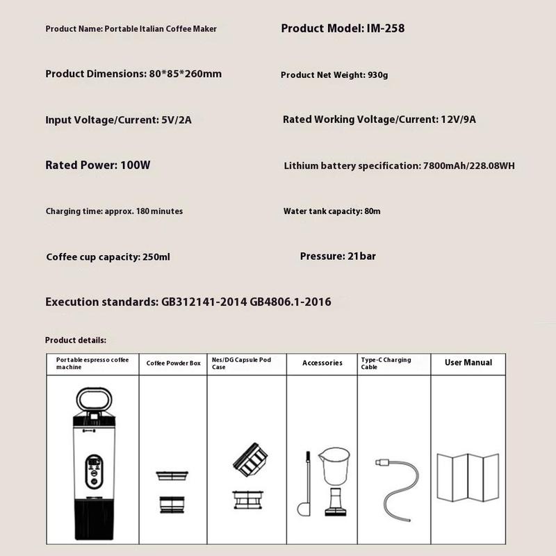 I motsetning til store maskiner kombinerer denne bærbare espressomaskinen kraft, bærbarhet og allsidighet i ett. Enten du er hjemme, på tur, på camping eller på kontoret, sørger den for at du aldri trenger å gå på kompromiss med kaffekvaliteten.