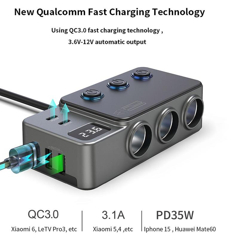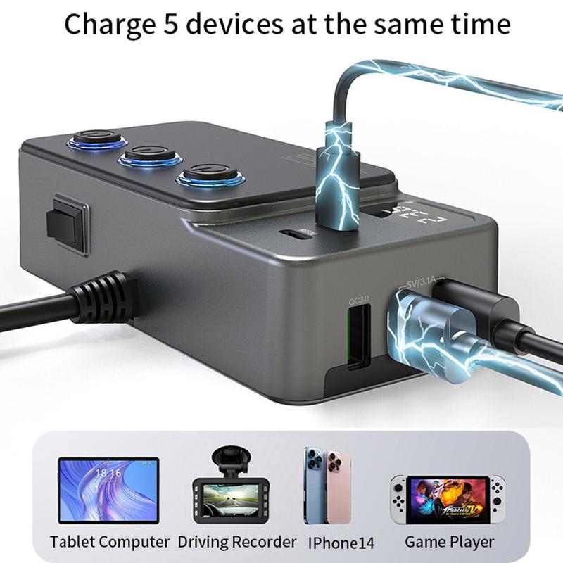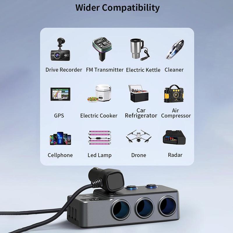 - 3-i-1 sigarettenneradapter: Utvid bilens enkle strømuttak til flere ladepunkter for ekstra bekvemmelighet og allsidighet.