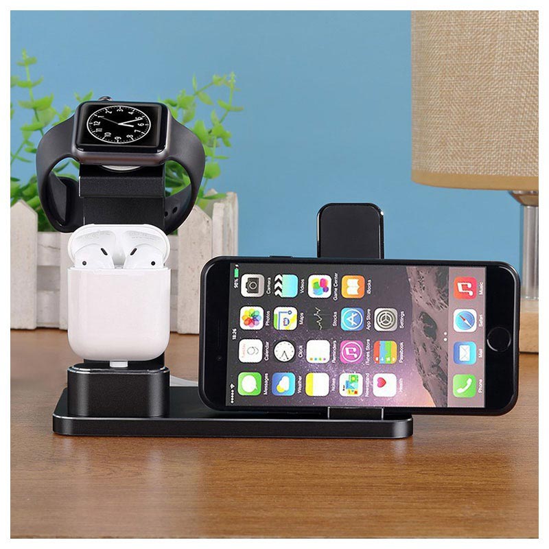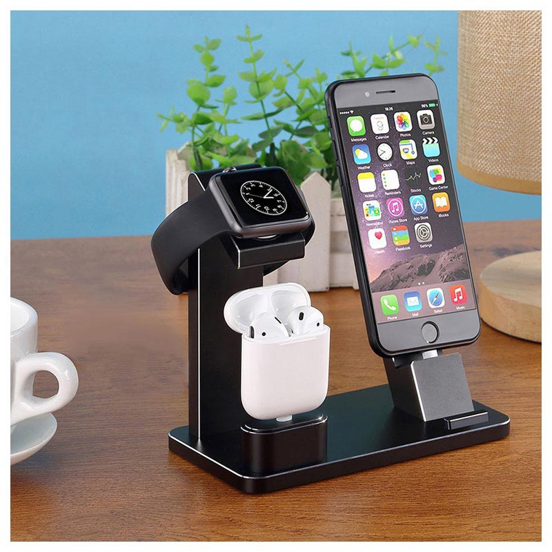 - Praktisk ladestativ for lagring og lading av Apple Watch, AirPods og iPhone