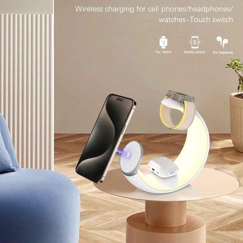 3-i-1 magnetisk trådløs lader med nattlys for smarttelefon, smartklokke og øretelefoner - 15W