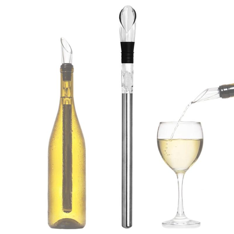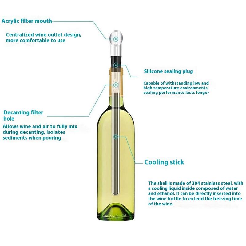 3-i-1 vinkjølestang i rustfritt stål - isfri kjølepinne med lufter og skjenkerør