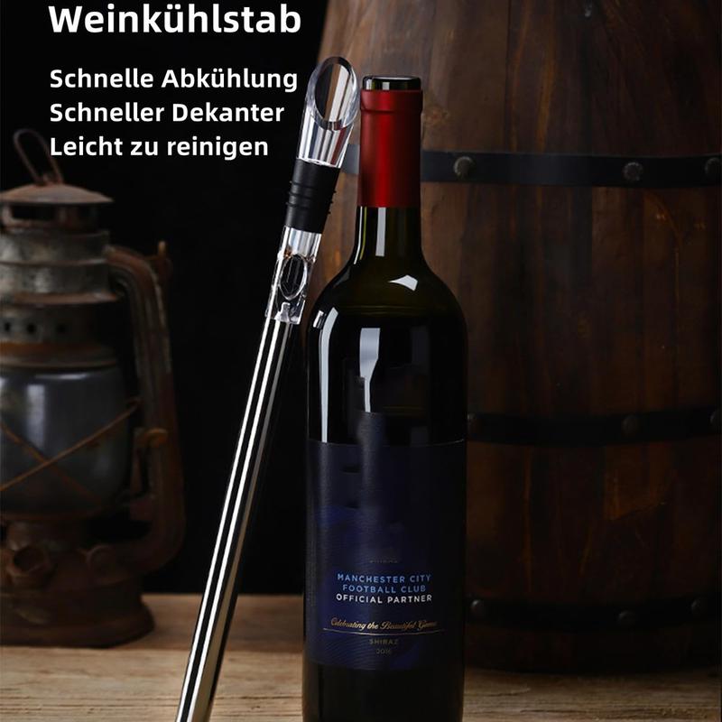 Nyt perfekt nedkjølt vin uten å vanne den ut. Denne 3-i-1-vinkjølestangen i rustfritt stål kjøler ned vinen på bare 10-15 minutter og holder den kald i over 2 timer. Den innebygde lufteren fremhever aroma og smak mens du skjenker, mens den integrerte skjenkekannen sørger for en jevn, dryppredusert servering. Bare legg stangen i fryseren før bruk, sett den inn i flasken, og nyt forfriskende vin ved riktig temperatur - enten det er hvit, rosé eller rødvin.