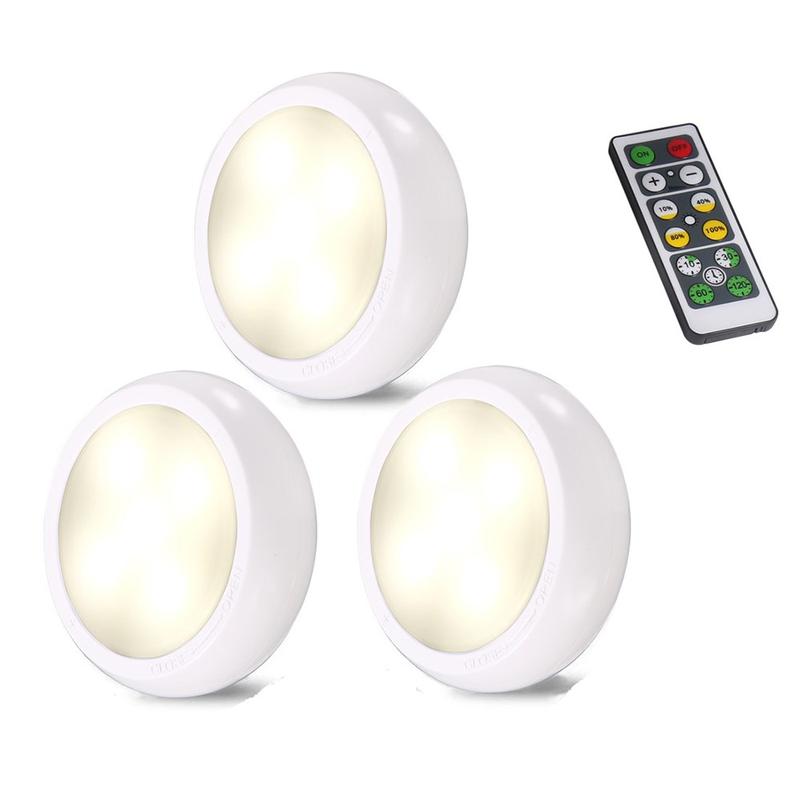3-pakning trådløse LED-lamper med fjernkontroll - batteridrevet
