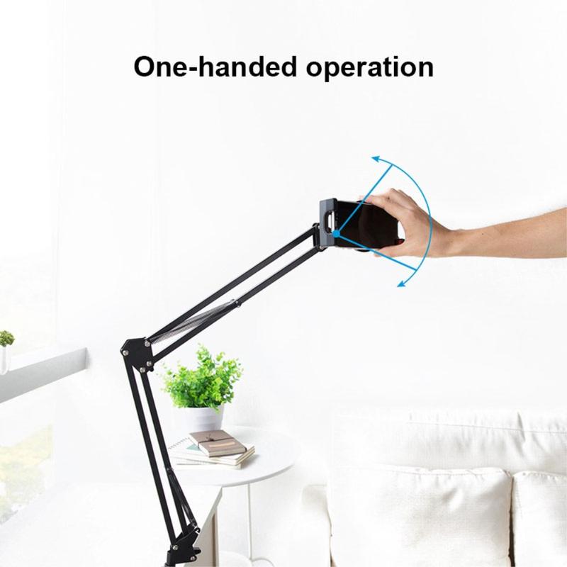 Den justerbare lange armen gjør at du fritt kan tilpasse høyde, avstand og vinkel, noe som gjør den ideell for å se på videoer, videosamtaler, lese eller surfe - håndfritt.