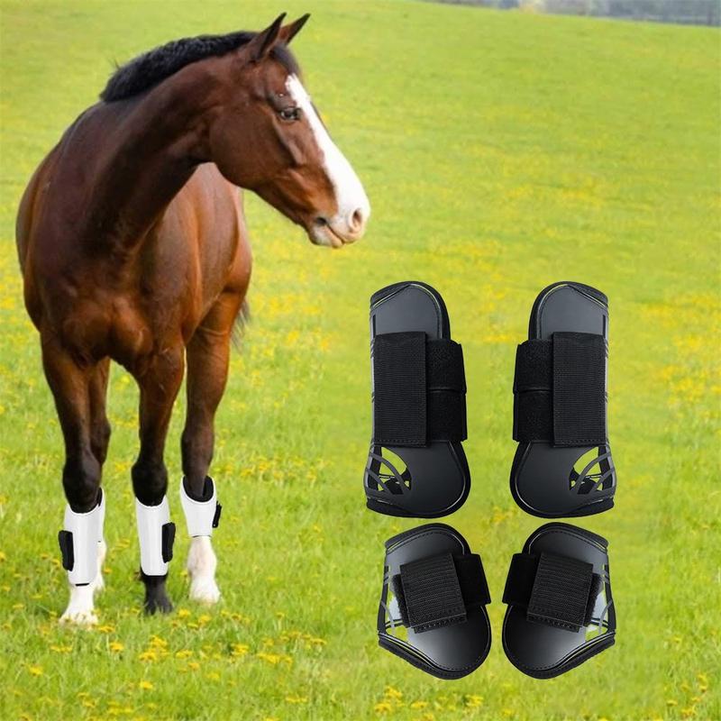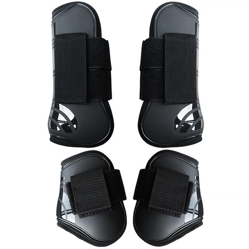 4-delt sene- og fesselstøvler for hest - størrelse L - PU-skall, neoprenfôret støtdempende sett