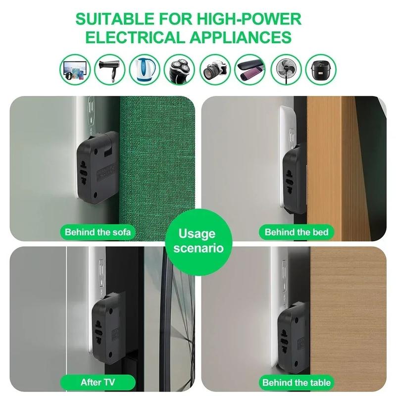 - Roterbare flate plugger er spesielt nyttige bak skap eller sofaer, hvor standardplugger ofte blokkerer møbelplasseringen.