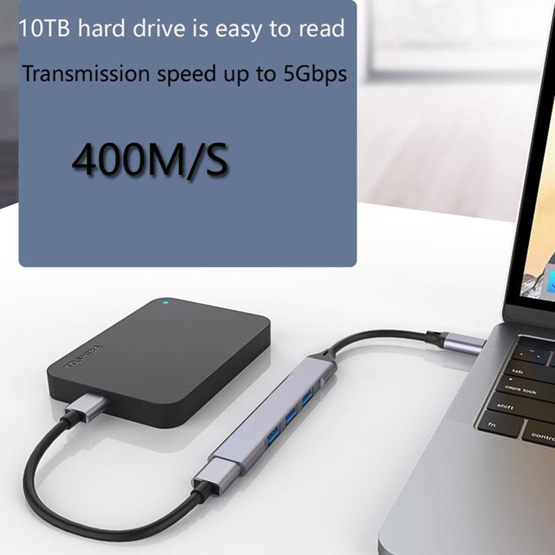4-i-1 USB-C-nav med 1x USB 3.0 + 3x USB 2.0 - umiddelbar portoppgradering for bærbare datamaskiner, nettbrett og telefoner