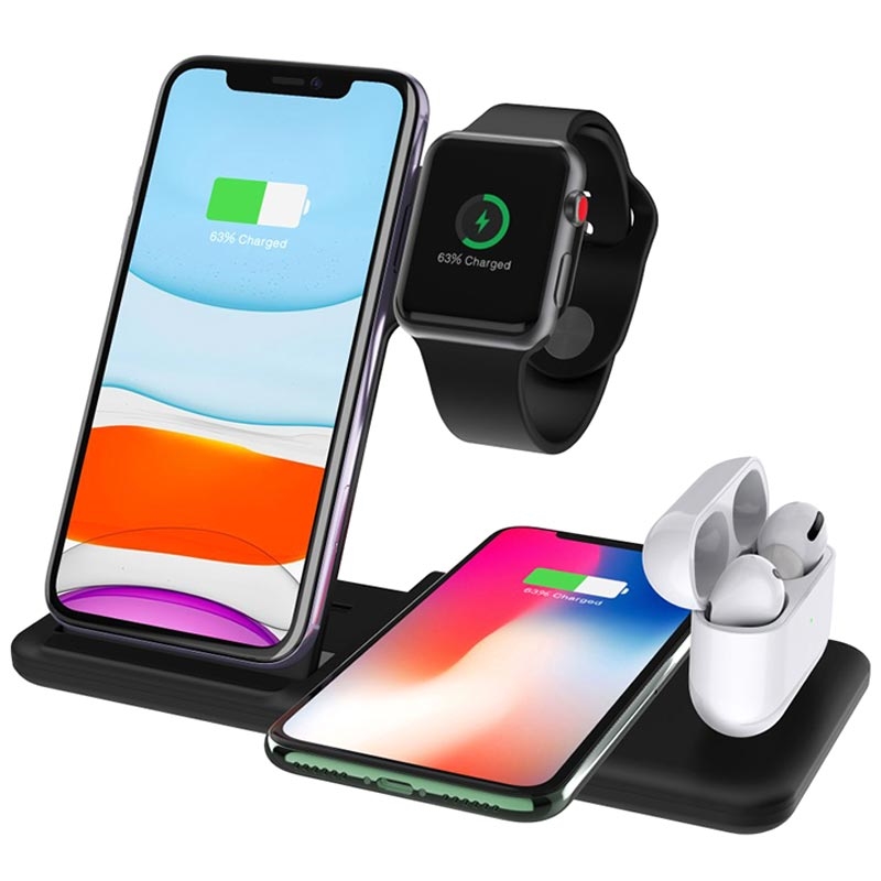 - 4-i-1-ladestasjon Q20 for smarttelefoner, øretelefoner og smartklokker