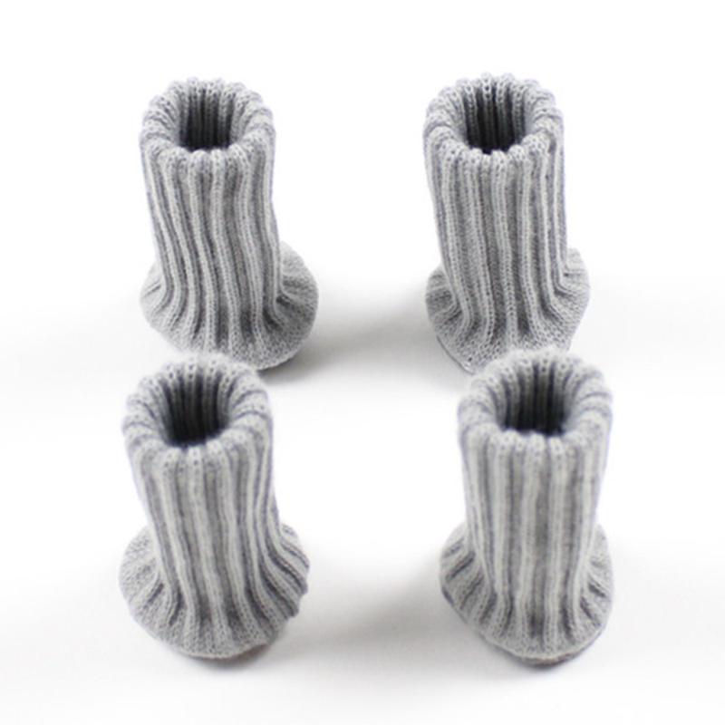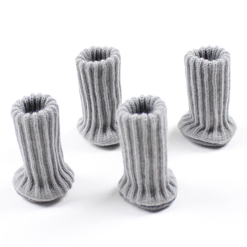 4-delte strikkede møbelbeintrekk - elastiske bord- og stolfotbeskyttere med filtbunnputer, støydemping og gulvbeskyttelse