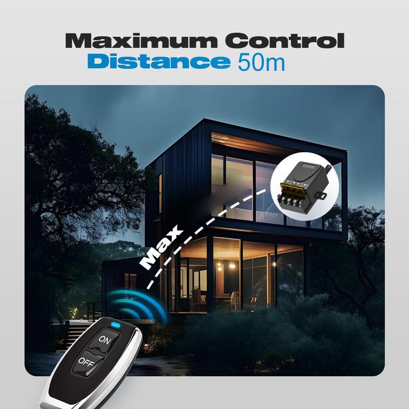 Med fire driftsmoduser - momentant, selvlåsende, sammenkoblet og forsinket - kan bryteren tilpasses forskjellige oppgaver, fra enkel lysbryting til mer avansert kontrollogikk. 433MHz RF-signalet gir stabil drift opptil 50 m i åpne omgivelser og kan passere gjennom vegger, dører og gulv mer effektivt enn infrarøde fjernkontroller.