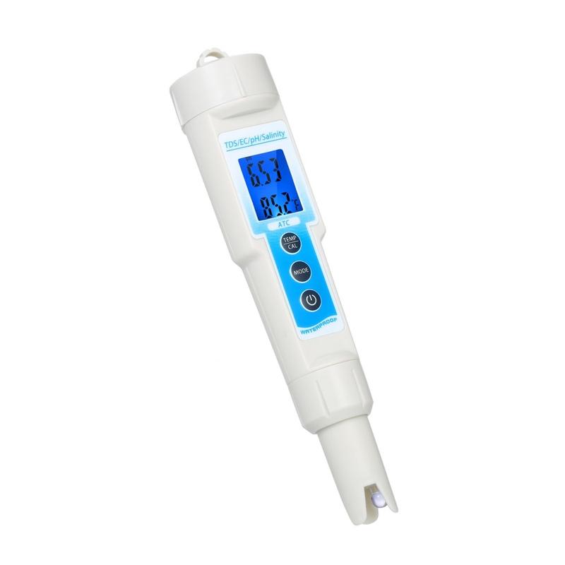 Multifunksjonell tester: har 5 typer funksjoner, inkludert test av TDS, EC, pH, saltholdighet og temperatur i væsker.