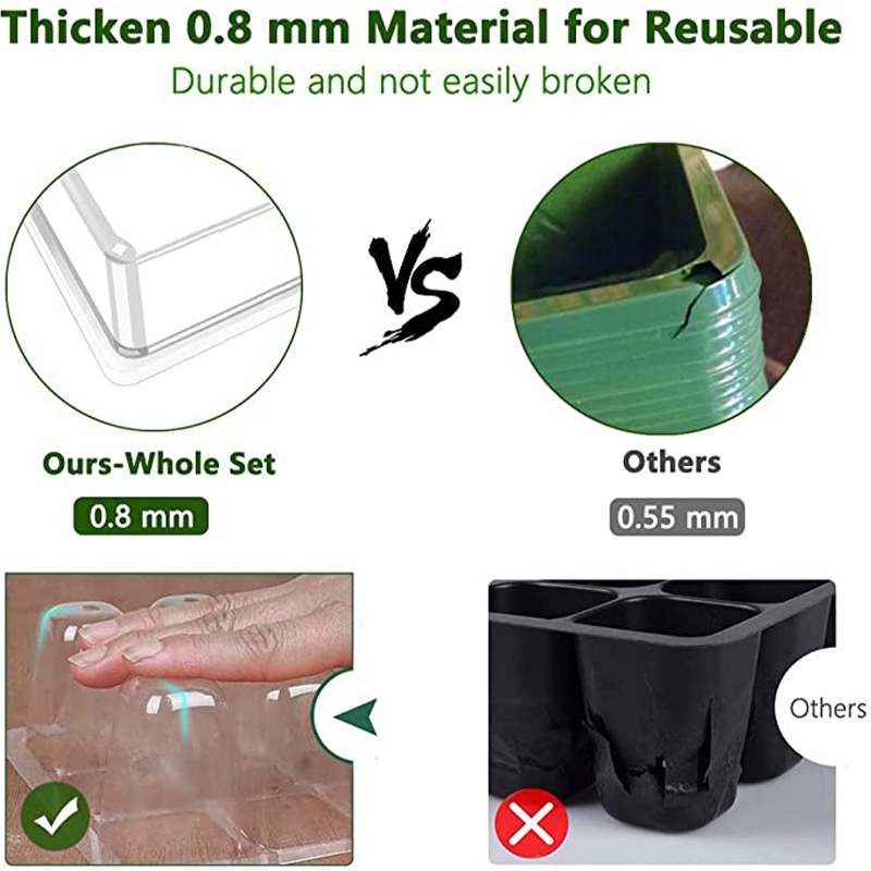 Dette 60-cellers startbrettsettet gir det ideelle drivhusmiljøet for spiring av blomster, grønnsaker, urter og stiklinger. Med en høy kuppel for fuktighetskontroll, holdbare 0,8 mm brett og dreneringshull i bunnen hjelper det plantene dine med å spire raskere og vokse sunnere.