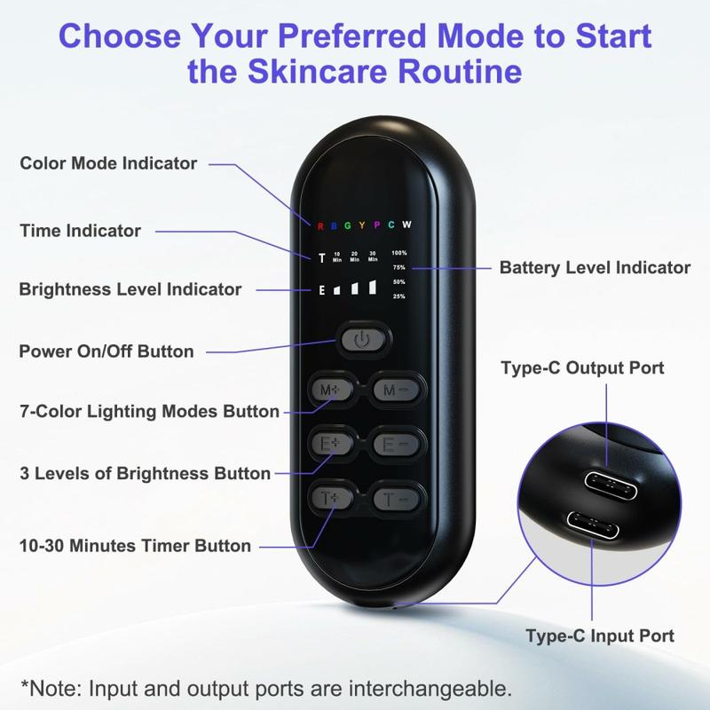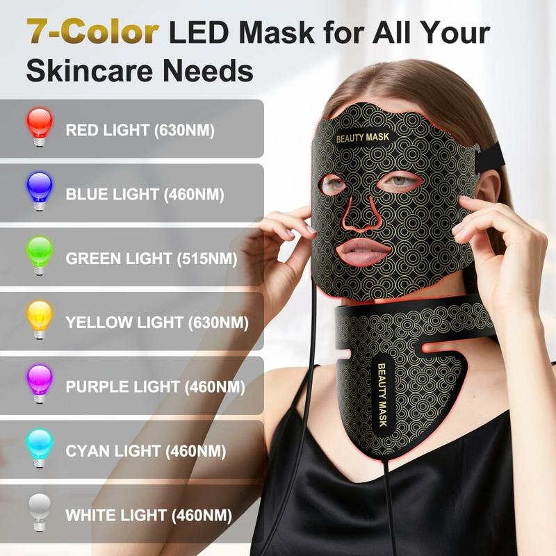 Denne LED-lysterapimasken bruker 7 målrettede lysfarger – rød, blå, grønn, gul, lilla, cyan og hvit – for å behandle flere hudproblemer som matthet, ujevn hudtone, kviser og aldringstegn. Hver bølgelengde er designet for å gi en sunnere hud gjennom mild, ikke-invasiv behandling.